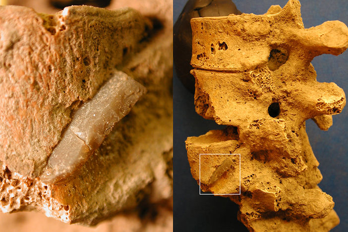 There is little evidence of violence among prehistoric hunter-gatherers. Yael Toren found interest in a rare find which was uncovered during the 1930’s excavations at Kebara Cave, a karstic cave formed in the hard limestone of the western escarpment of the Carmel mountains in Israel. A tiny crescent-shaped tool, known to archaeologists as a Lunate microlith, typical of the Early Natufian culture, c.a. 13,000-12,000 BC, was found embedded within the seventh or the eighth vertebra of a middle-aged man. Calculations of the force required for the lunate to penetrate the vertebra and to kill as it did, suggest a purposeful strike from a short distance. 15,000 years later, pure violence does not require physical force, a keyboard thousands of miles away is enough.